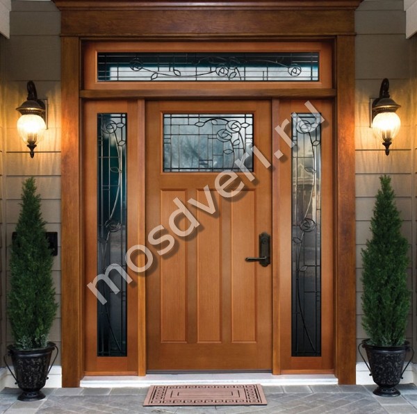 Двупольная остекленная дверь из массива с элементами ковки — объединяет стильный внешний вид и превосходные защитные характеристики.